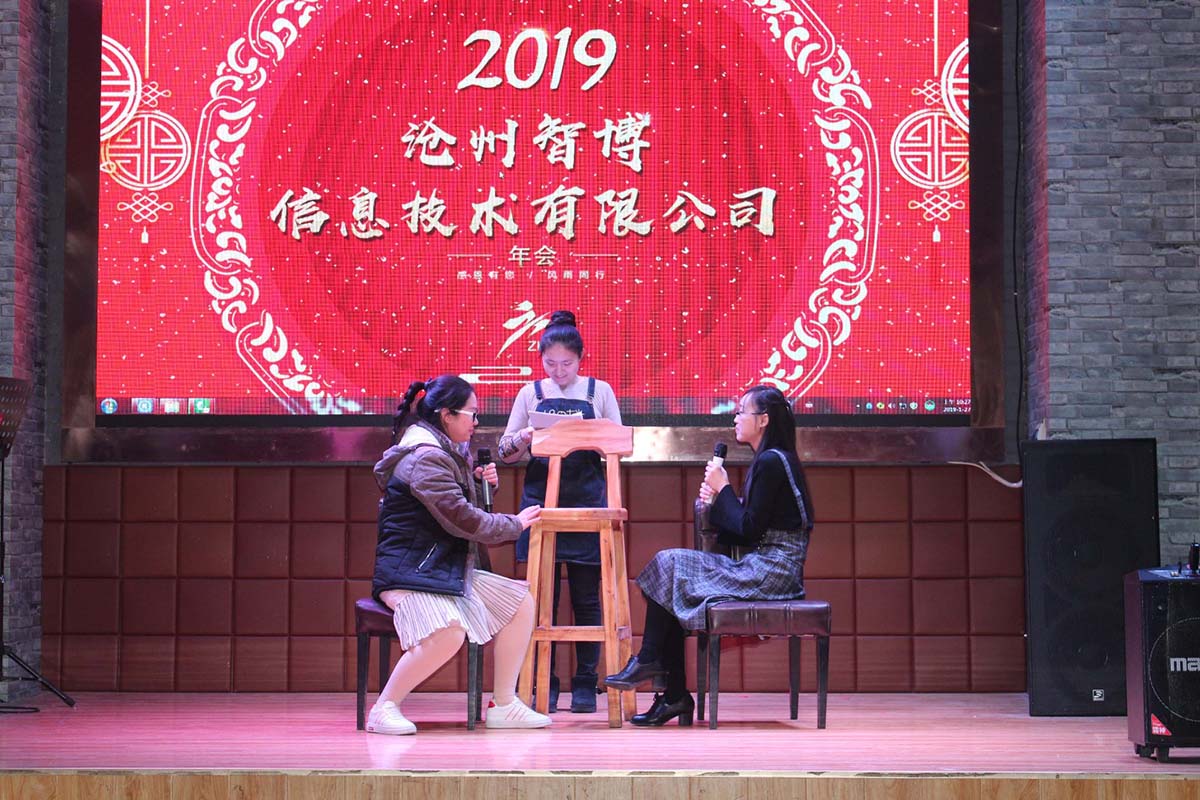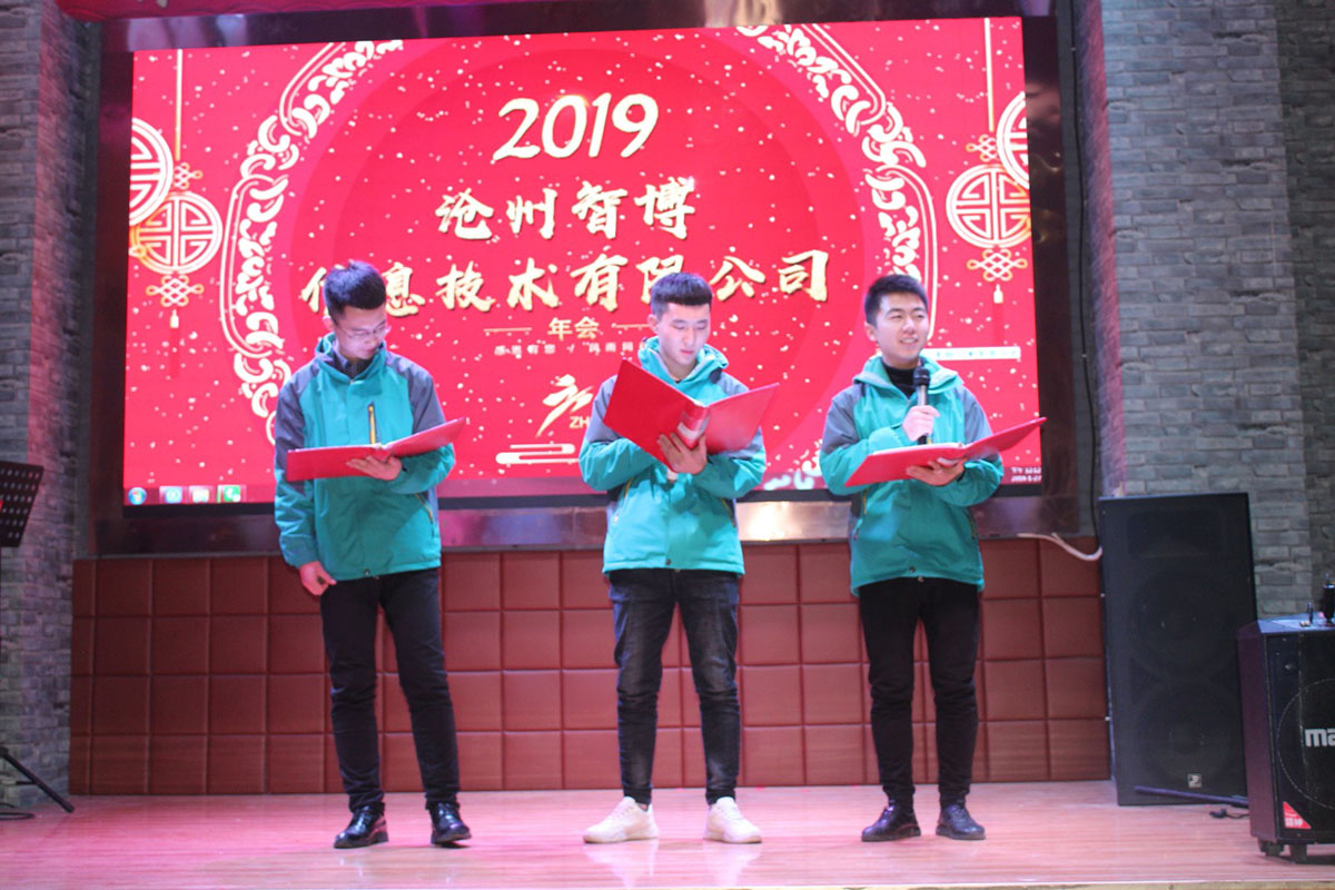 2019年1月27日上午,智博2019年度年會如約拉開大幕。公司全體小伙伴共計40人參與了此次年會活動。本次年會我們繼續(xù)采用了網絡直播+全程錄制的形式,有880人同時在線觀看。另外我們選擇了啟用四位主持人,為我們年會的順利召開保駕護航。短短的一上午,小伙伴們的節(jié)目一項接著一項,包袱一個接著一個,掌聲一波接著一波,歡笑在這里交織,才藝在這里碰撞。