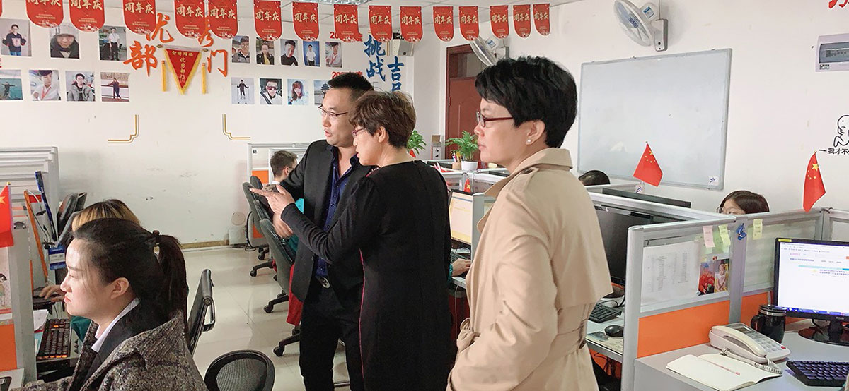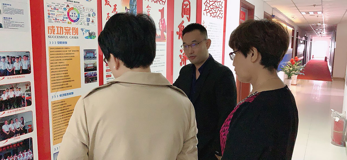 滄州師范學院商學院院長張鳳燕女士、廣告學專業(yè)教授王麗芳女士和學生代表一行對滄州智博信息技術有限公司的辦公環(huán)境、日常工作、公司榮譽、團隊建設、企業(yè)文化等進行了實地參觀,整潔的辦公環(huán)境、堅實的技術實力、年輕朝氣的團隊成員、創(chuàng)新進取的企業(yè)精神給她們留下了深刻印象。
